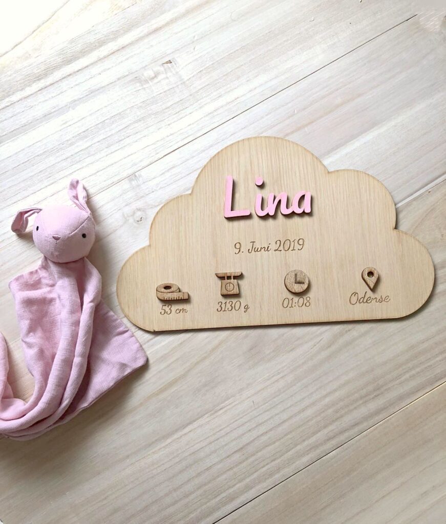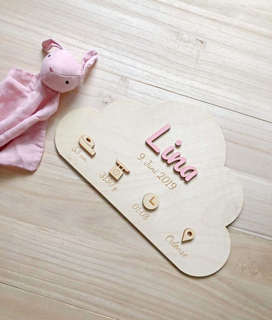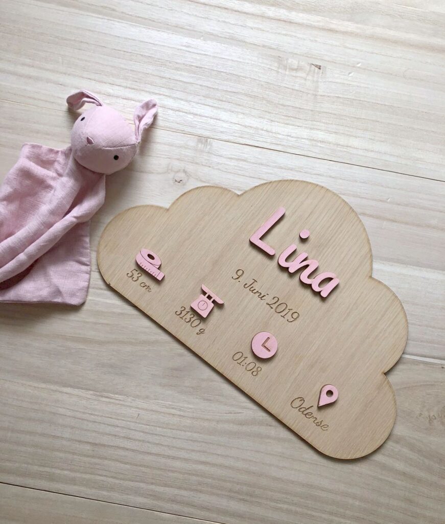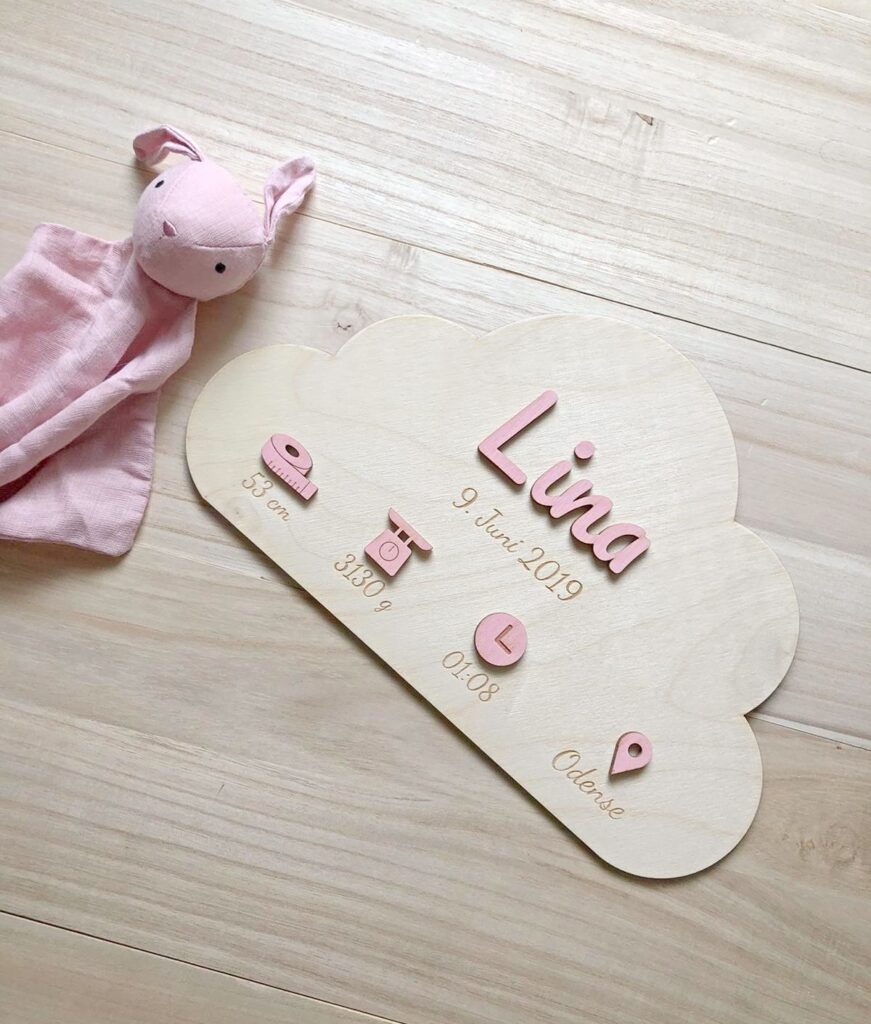 AUFMERKSAMKEIT! Zum Aufhängen wird ein starkes Montageband empfohlen, das nicht im Kaufpreis enthalten ist. Besonders beim Aufhängen über dem Kinderbett ist eine starke Haftung wichtig, um maximale Sicherheit zu erreichen. Wir weisen außerdem darauf hin, dass die Holzfarbe aufgrund der natürlichen Vielfalt des Holzes variieren kann. Bitte beachten Sie, dass wir unser Vorgängermodell optimiert haben und für die Einfärbung von Namen und Symbolen eine andere Farbe als bisher verwenden, weshalb sich die Farben geringfügig von den Vorgängermodellen unterscheiden. Bei allen Materialien kann es manchmal zu kleinen und unbedeutenden Farbunterschieden kommen, wenn die Materialien auf der Vorder- und Rückseite geschnitten und graviert werden.