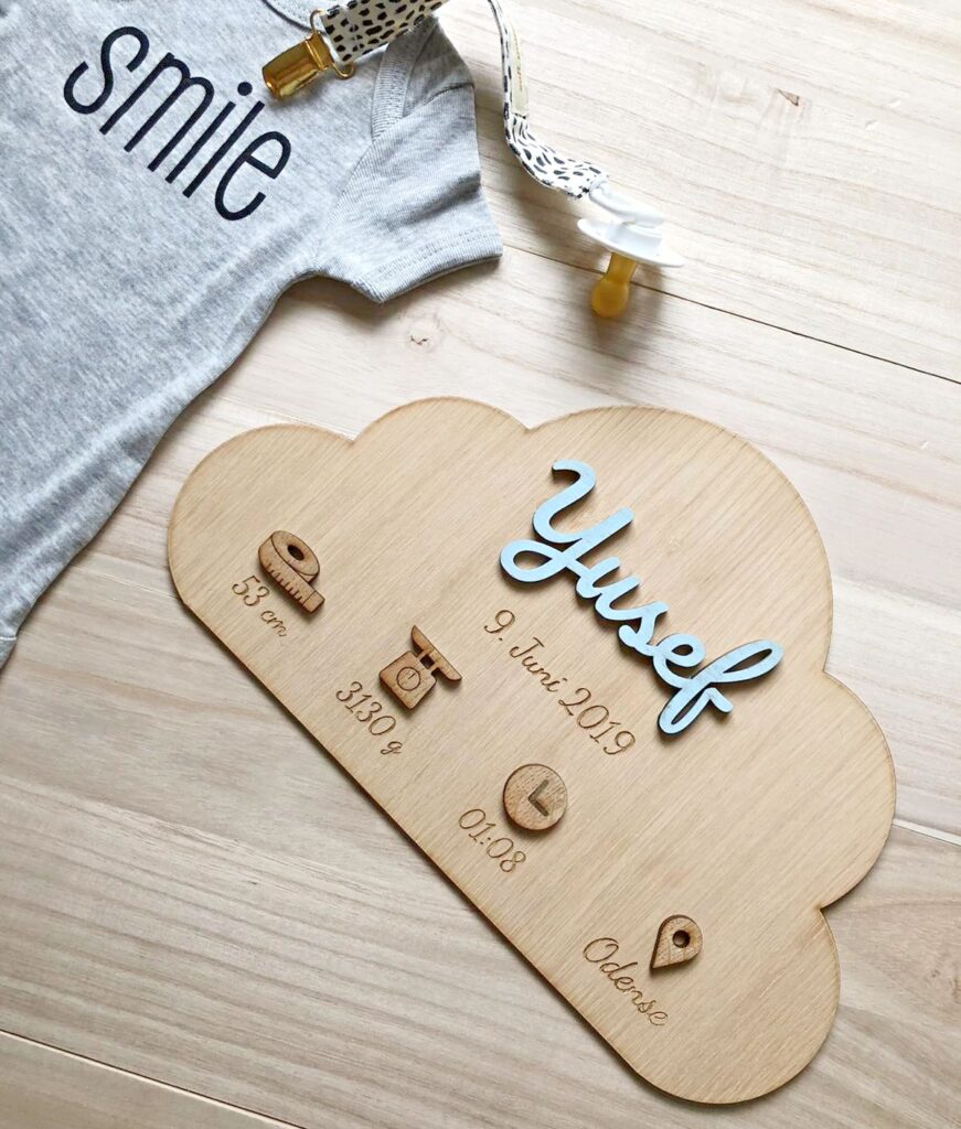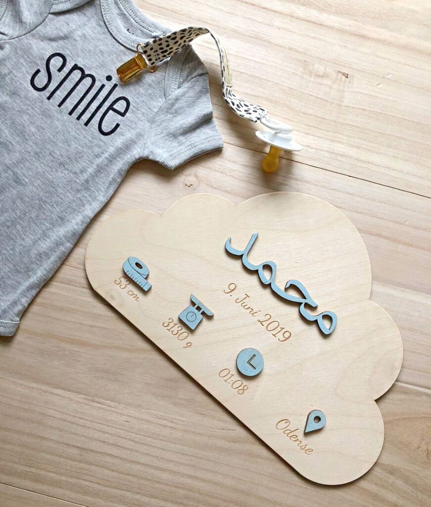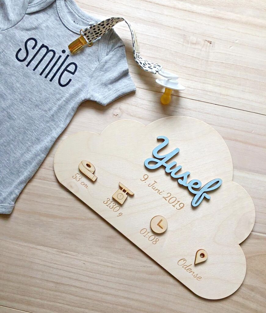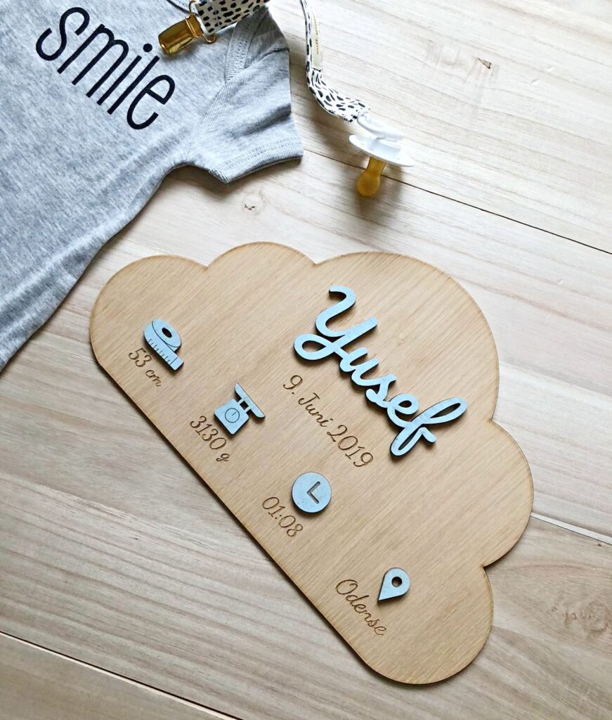 AUFMERKSAMKEIT! Zum Aufhängen wird ein starkes Montageband empfohlen, das nicht im Kaufpreis enthalten ist. Besonders beim Aufhängen über dem Kinderbett ist eine starke Haftung wichtig, um maximale Sicherheit zu erreichen. Wir weisen außerdem darauf hin, dass die Holzfarbe aufgrund der natürlichen Vielfalt des Holzes variieren kann. Bitte beachten Sie, dass wir unser Vorgängermodell optimiert haben und für die Einfärbung von Namen und Symbolen eine andere Farbe als bisher verwenden, weshalb sich die Farben geringfügig von den Vorgängermodellen unterscheiden. Bei allen Materialien kann es manchmal zu kleinen und unbedeutenden Farbunterschieden kommen, wenn die Materialien auf der Vorder- und Rückseite geschnitten und graviert werden.