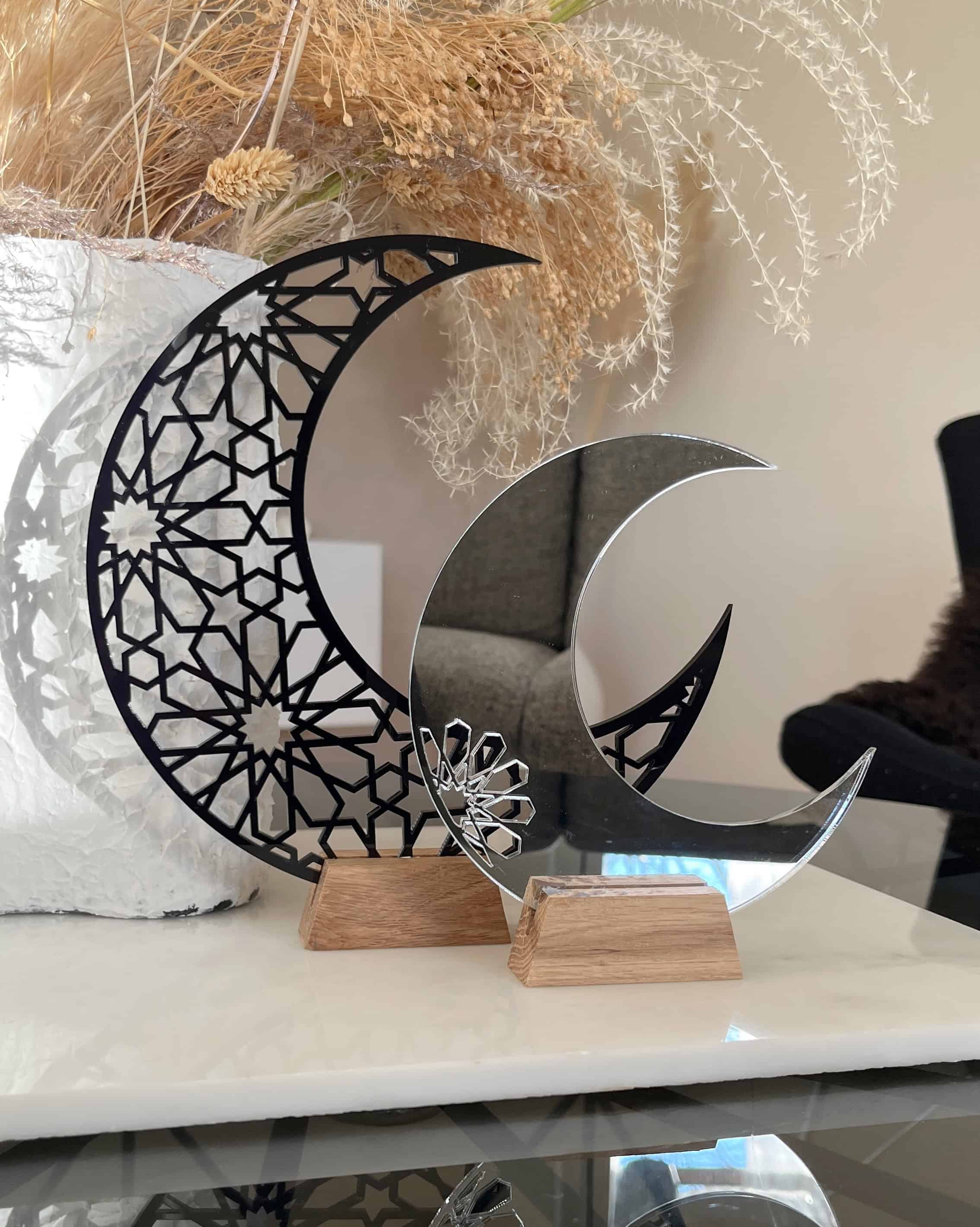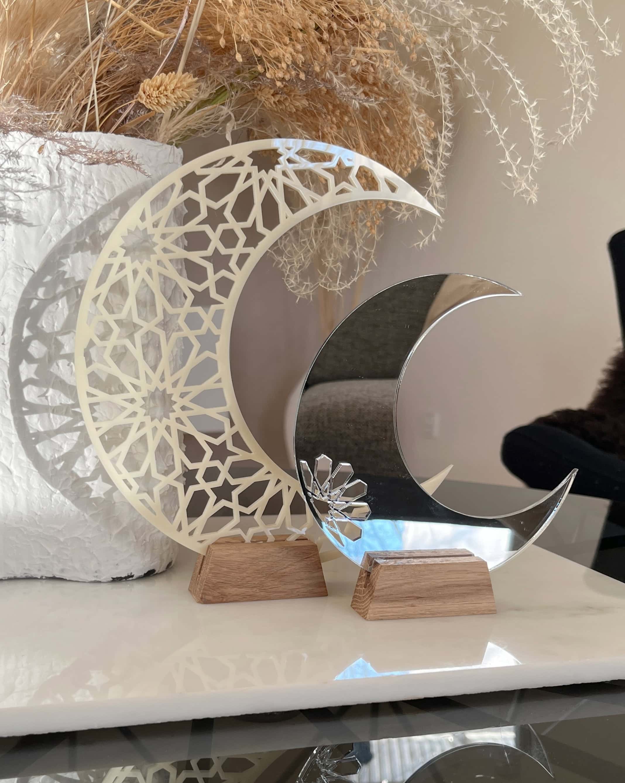 Der kleine Mond dieses Produkts besteht aus silbernem Spiegelacryl.