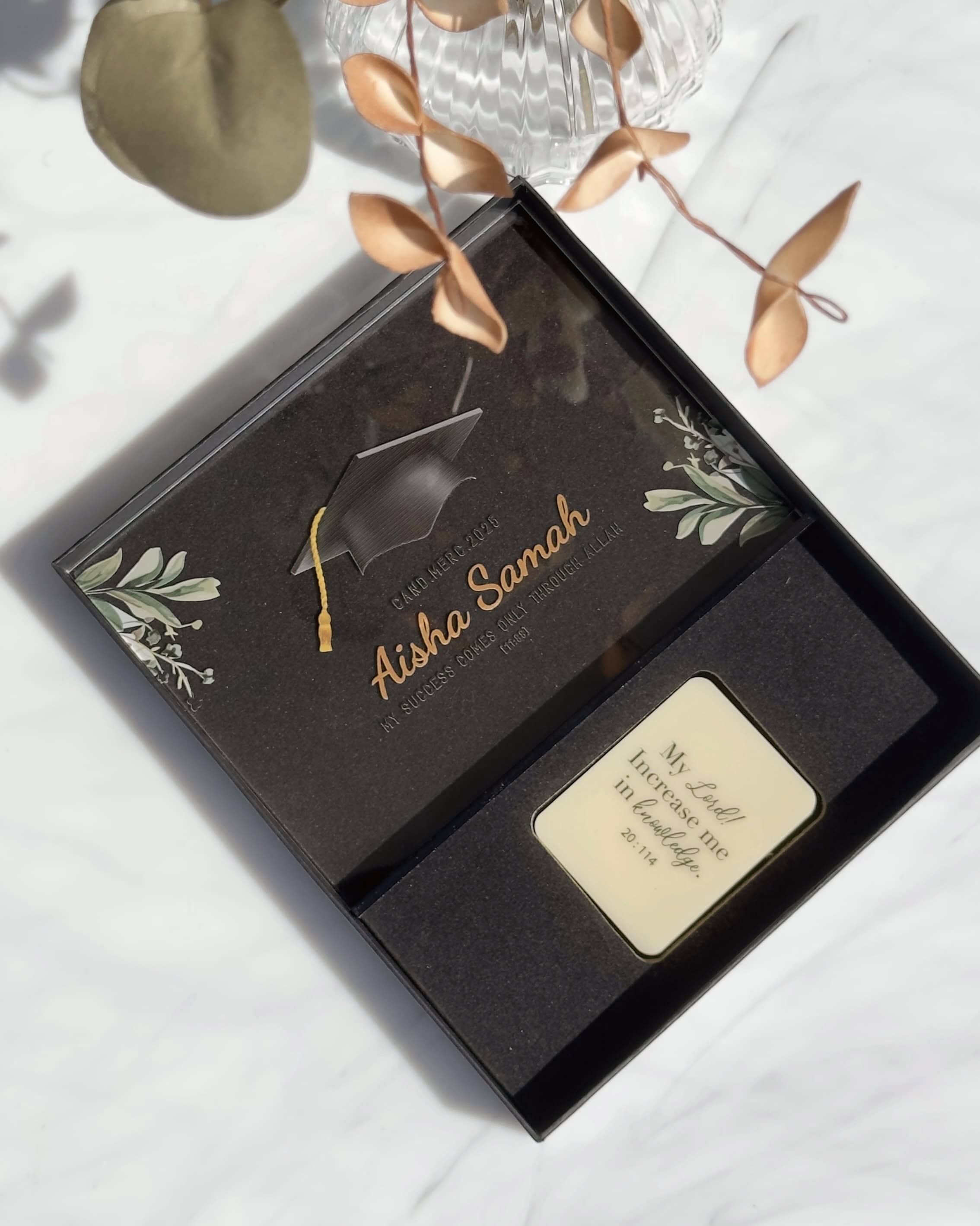 Le diplômé doit-il être reconnu à sa juste valeur ? L'examen final est maintenant terminé et, au grand moment, le nouveau diplômé reçoit ce coffret cadeau comme cerise sur le gâteau. Un cadeau extrêmement unique !