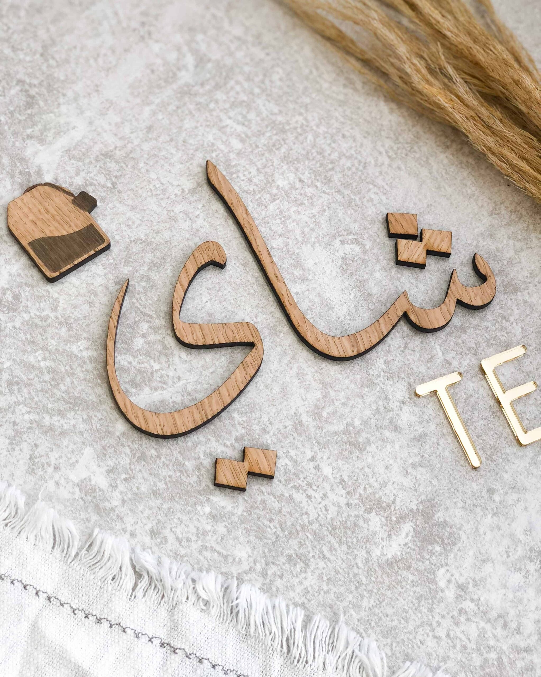 Plaque de thé en bois et acrylique pour votre coin café à la maison avec un mélange de calligraphie et d'écriture latine. Il offre une façon unique de décorer votre coin thé à la maison et crée une atmosphère très chaleureuse pour les amateurs de thé.