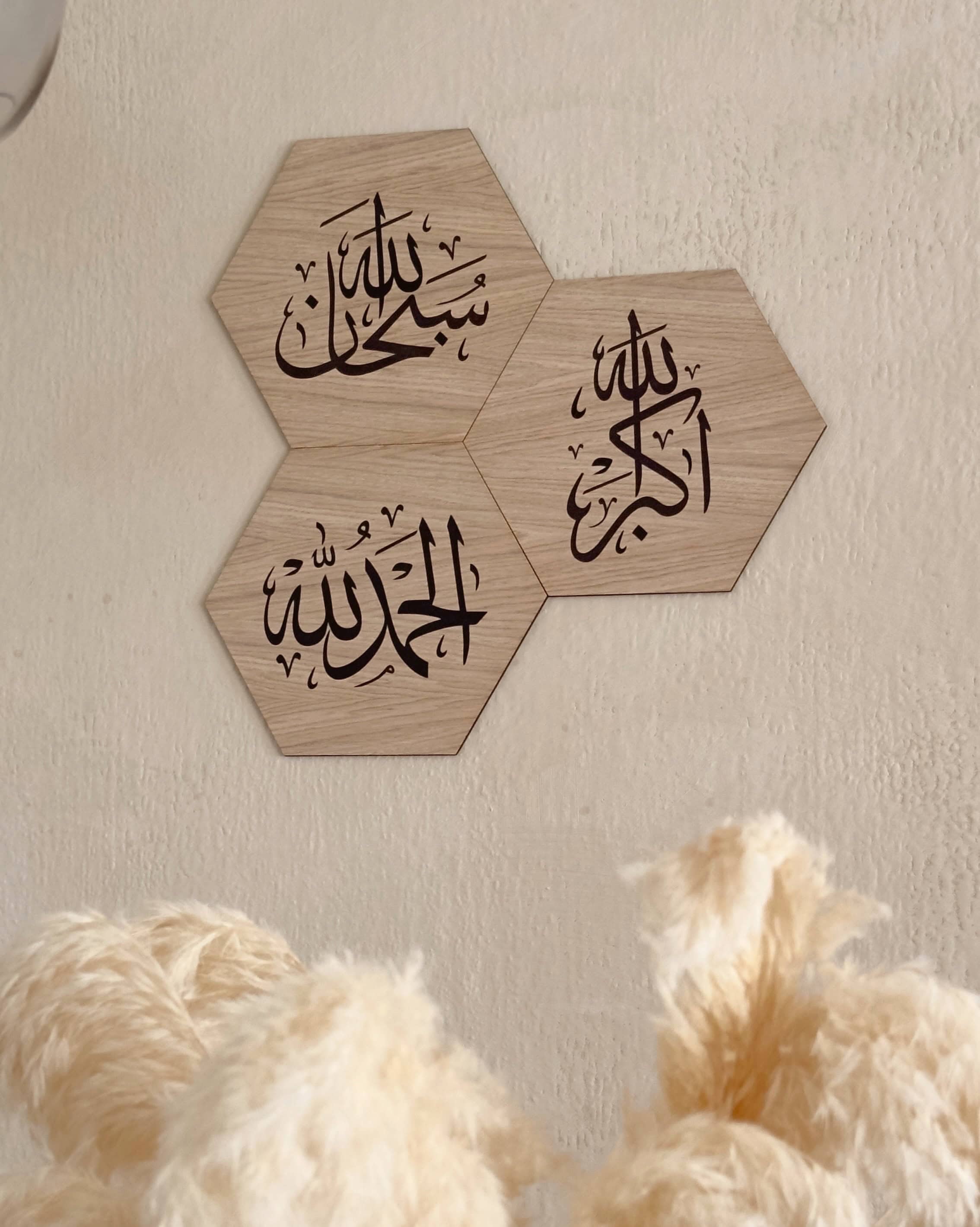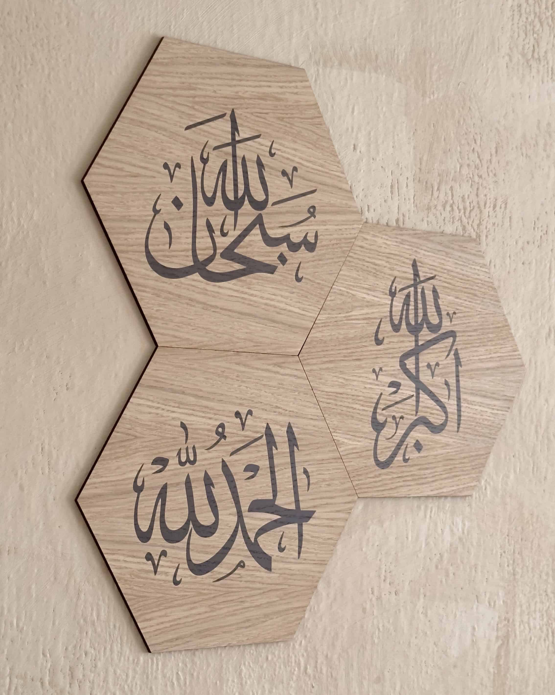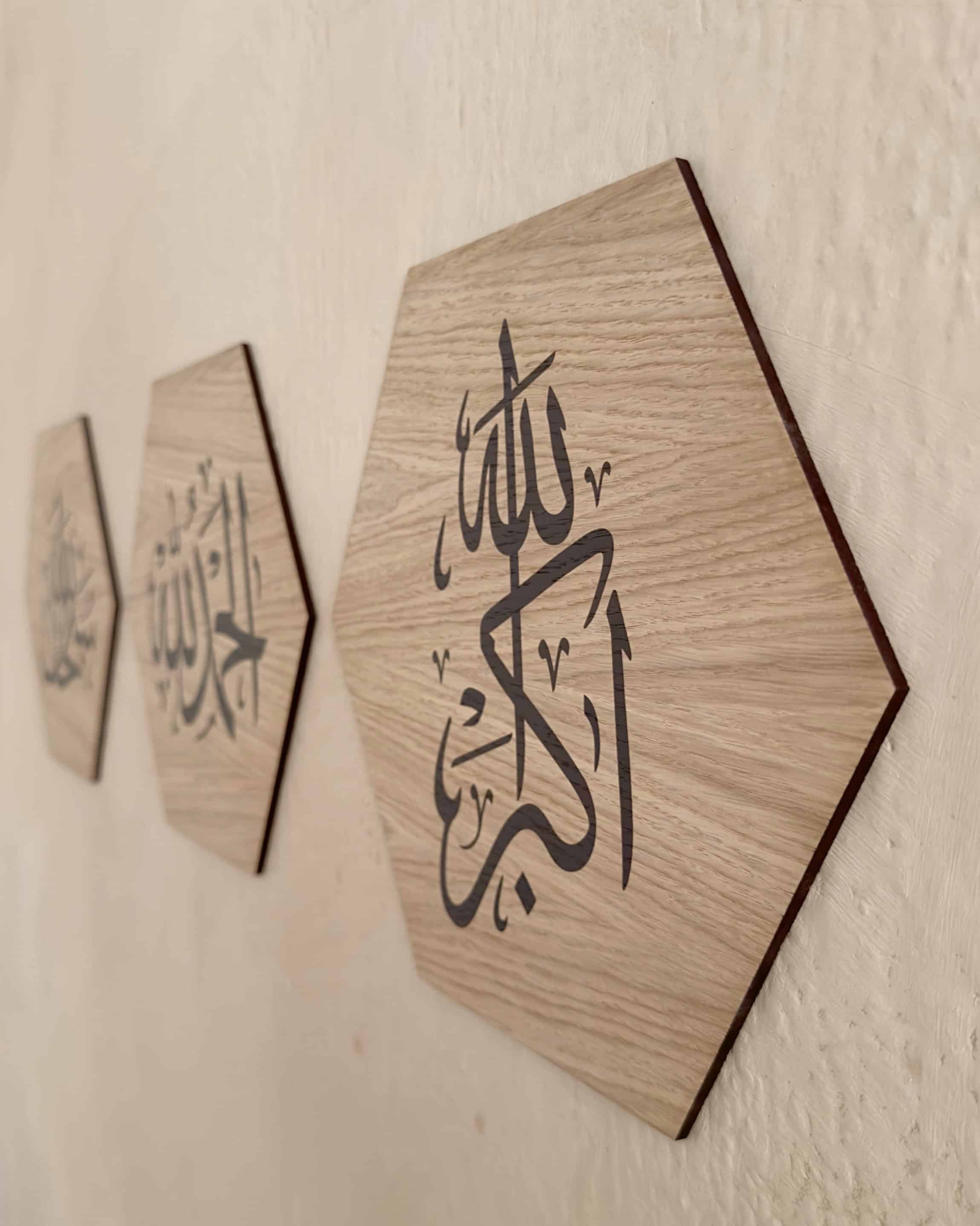 Unique frames for hanging that remind one of the remembrance of Allah, consisting of SubhanAllah, Alhamdulillah and Allahu Akbar. A beneficial product, but also elegant and stylish with Arabic calligraphy to decorate your home.