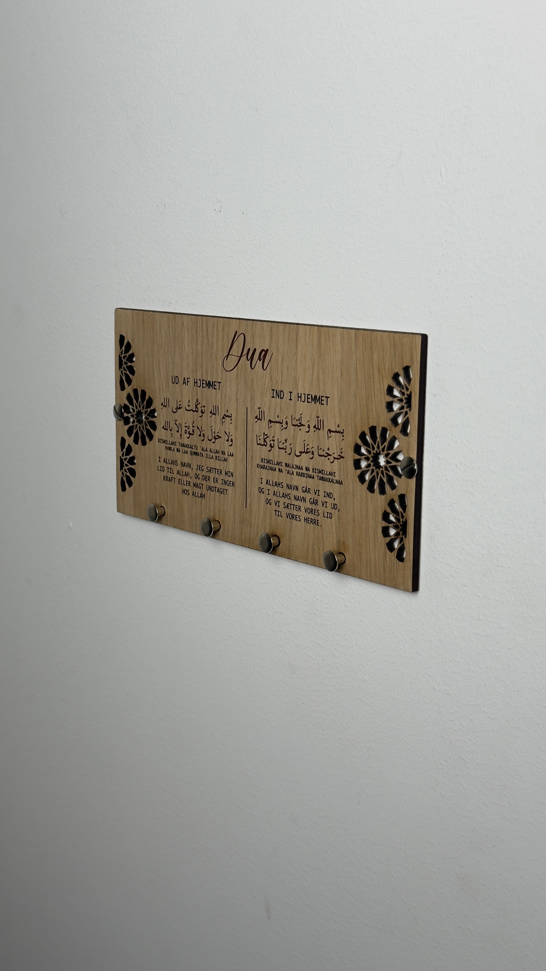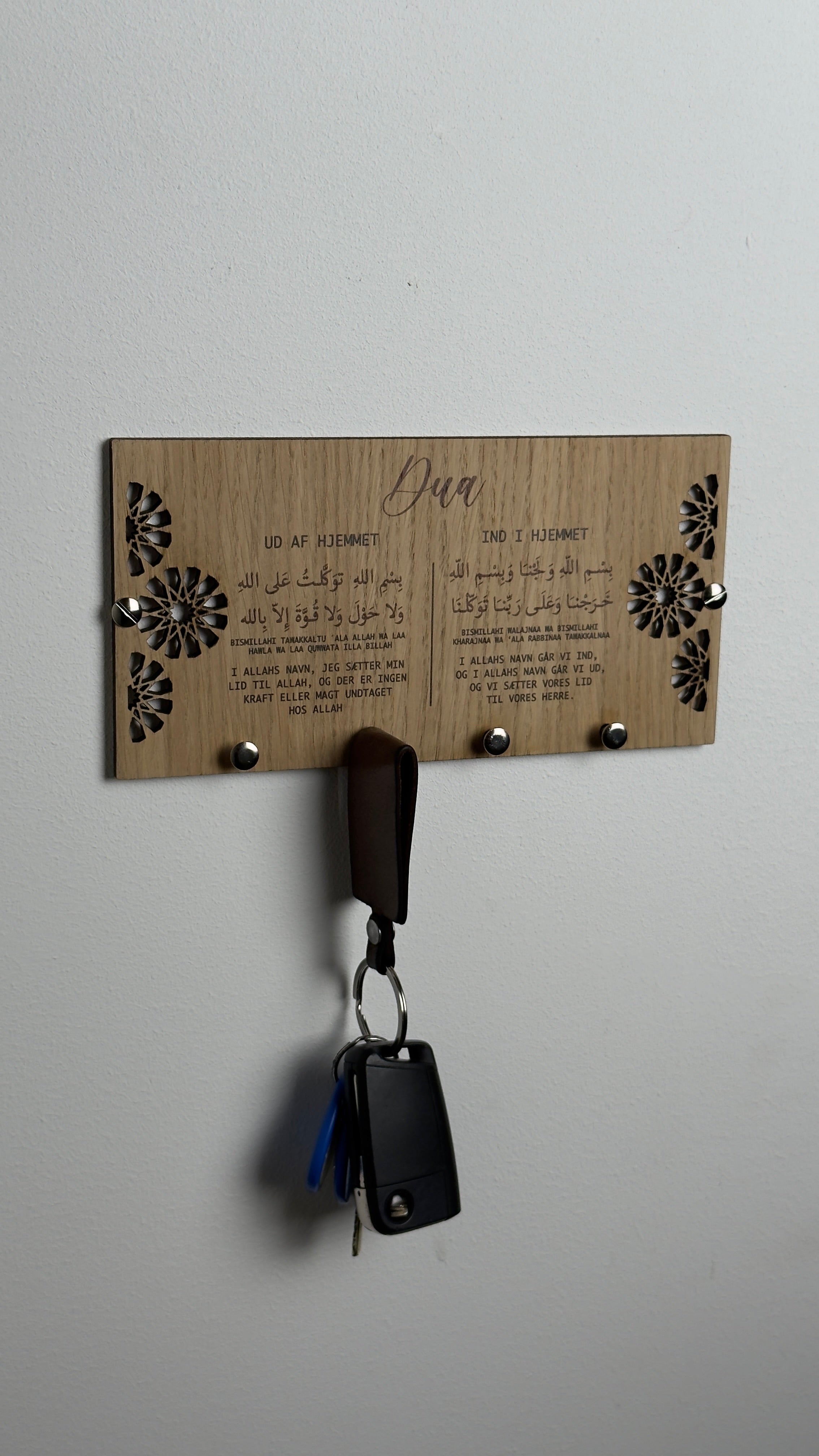 Vores nøgleholder i egefinér giver endelig din familie muligheden for at holde styr på nøglerne. Med et elegant design og ‘Dua til hjemmet’, mindes du om at huske Allah og søge Hans beskyttelse når du snupper nøglerne på vej ud og ind i hjemmet.