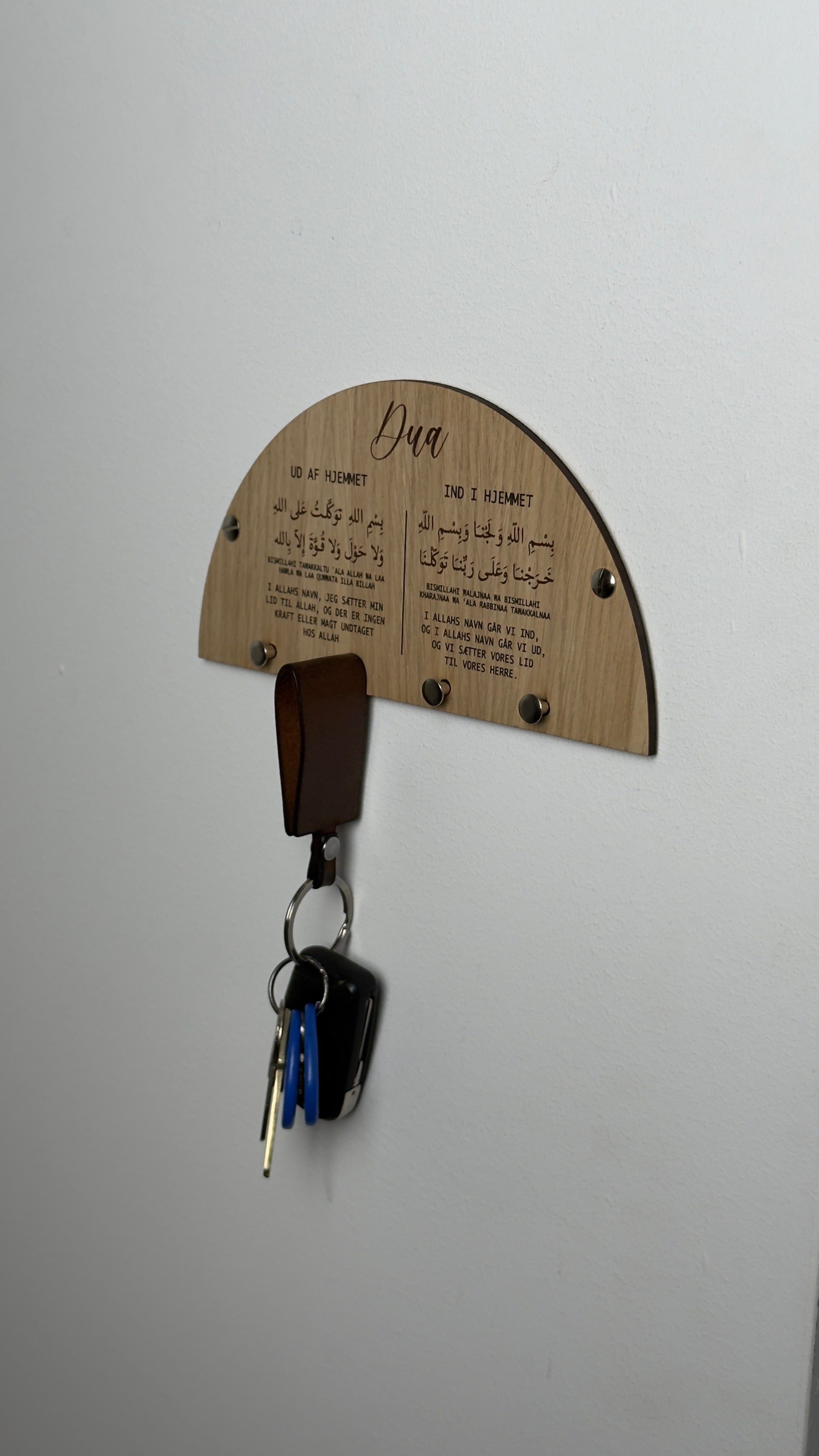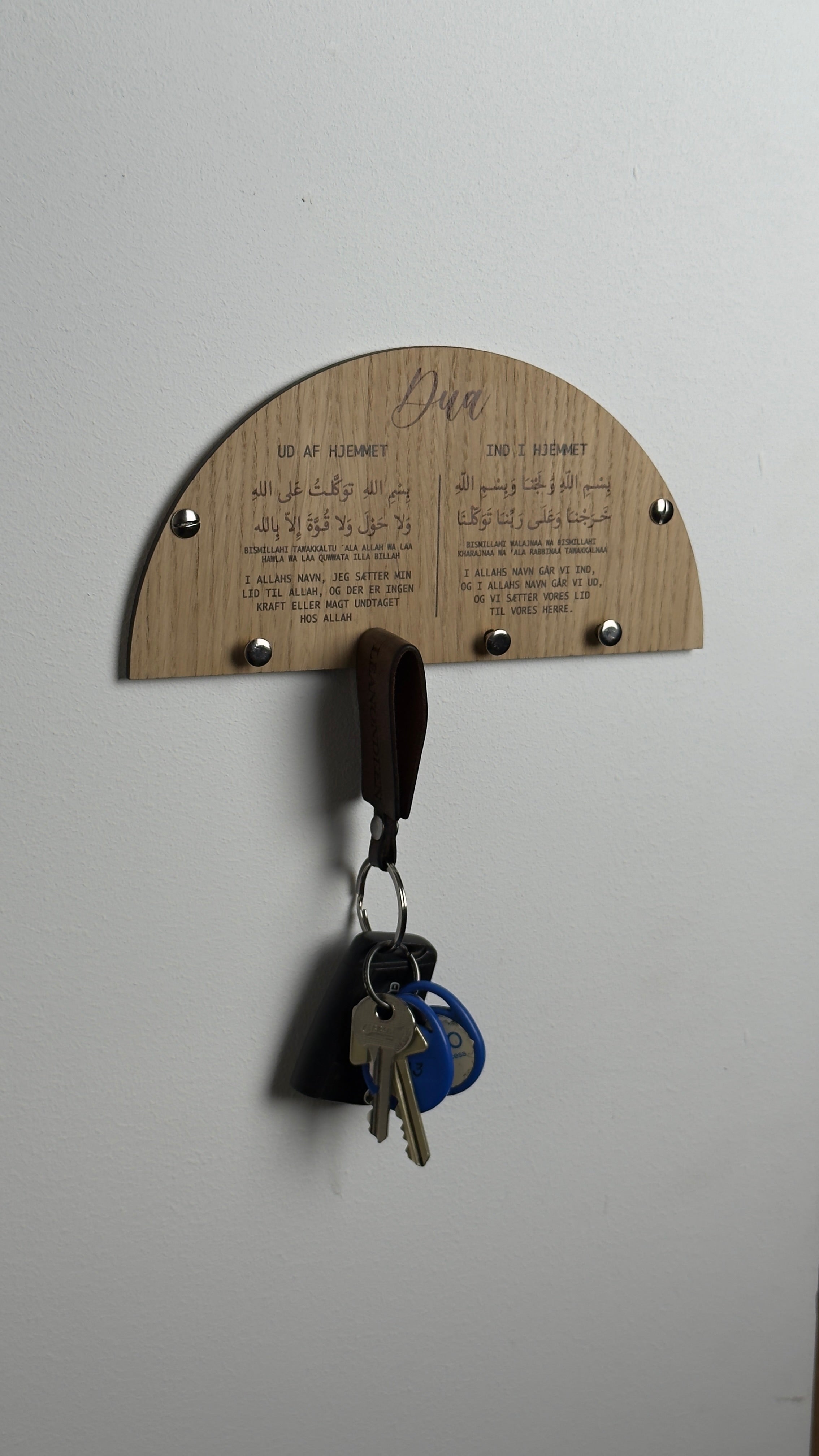 Vores nøgleholder i egefinér giver endelig din familie muligheden for at holde styr på nøglerne. Med et elegant design og ‘Dua til hjemmet’, mindes du om at huske Allah og søge Hans beskyttelse når du snupper nøglerne på vej ud og ind i hjemmet.
