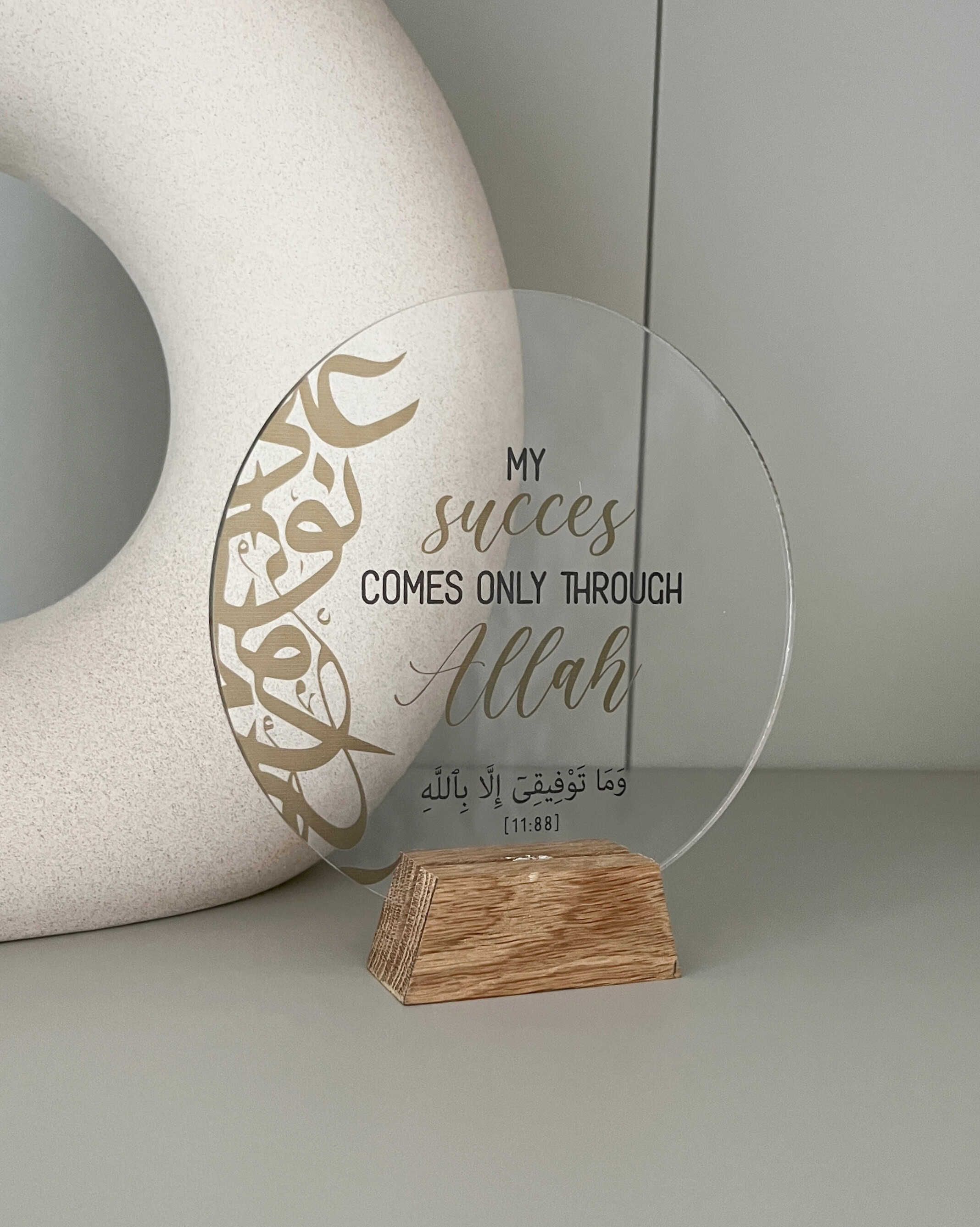 En påminnelse om att allt i våra liv av framgång kommer från Allah ensam. En elegant påminnelse som påminner om värdet av att sätta sin tillit till Allah och förbli ödmjuk i livets alla faser. Perfekt för att föra in reflektion i ditt hem eller som en meningsfull present.