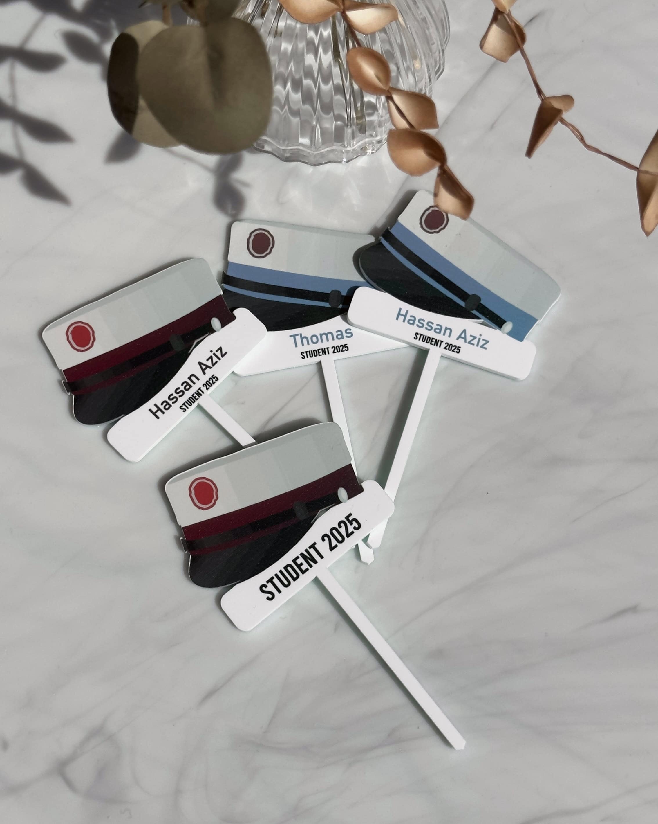 Denne caketopper har en guld forside og en grå bagside. Den grå bagside er dét, som giver guldeffekten på forsiden.